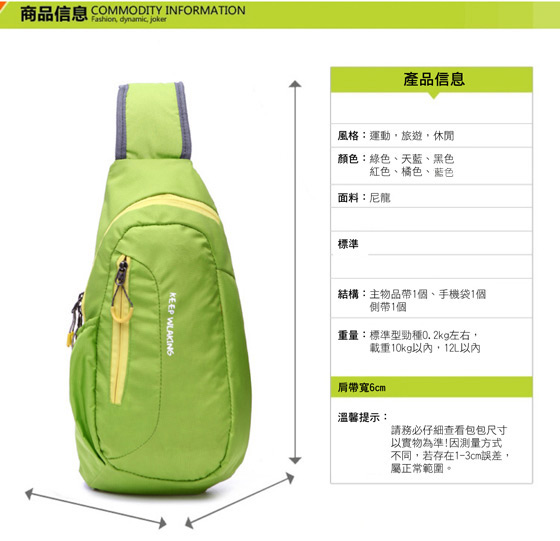 商品名稱:炫彩活力輕量防水斜肩包